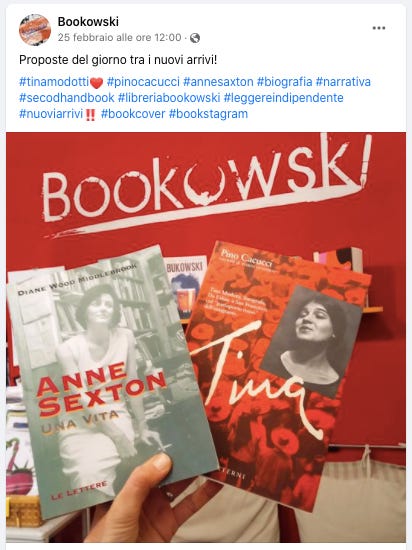 Bookowski è una piccola libreria indipendente e luogo di aggregazione che si trova nel centro storico di Genova. Il punto forte di questo posto è la sezione libri usati che grazie ad una forte e consolidata rete di fornitori regala sempre chicchette imperdibili, come questa prima edizione di quel capolavoro che Tina di Pino Cacucci. Tappa obbligata se ci si trova in zona.